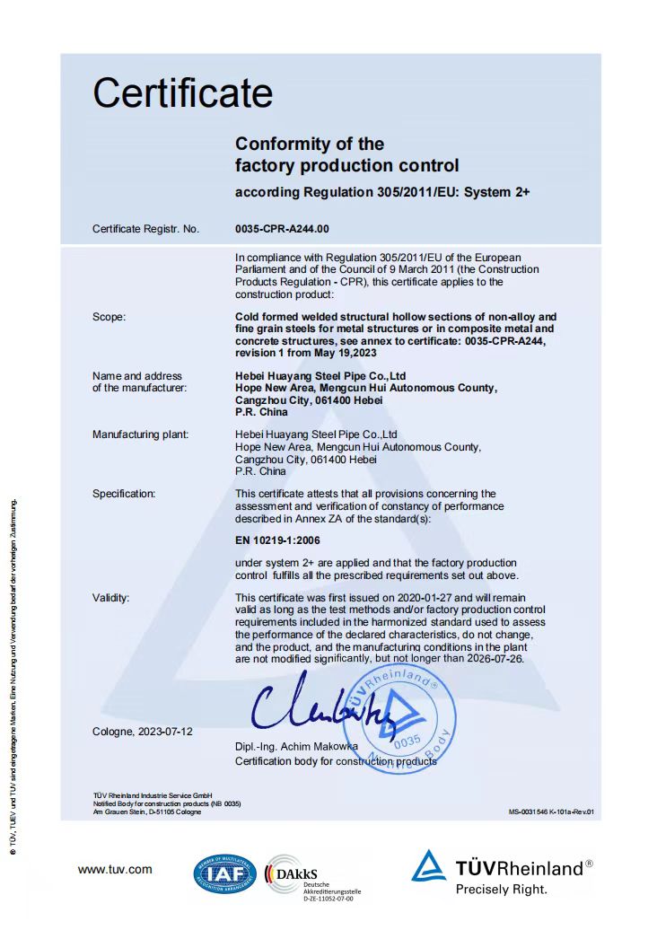河北華洋鋼管有限公司公司創(chuàng)建于2005年,注冊(cè)資金5億元,公司占地面積1000余畝,固定資產(chǎn)12億元,年銷售收入近100億元,現(xiàn)有員工600余人。“華洋牌"高頻直焊鋼管被評(píng)為“河北省名牌產(chǎn)品”,年生產(chǎn)能力可達(dá)260萬噸,2024年河北華洋鋼管有限公司榮獲河北省百強(qiáng)民營企業(yè)(69位),河北省百強(qiáng)制造業(yè)(57位)榮譽(yù)稱號(hào)。